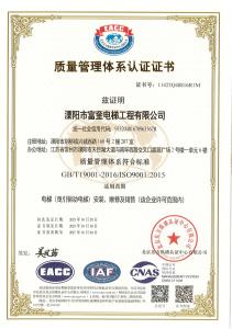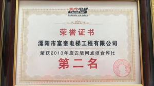 溧陽市富奎電梯工程有限公司 溧陽市富奎電梯工程有限公司是于二OO八年一月九日在原前身溧陽市電梯工程公司基礎(chǔ)上成立的,是專業(yè)從事電梯銷售安裝維修、保養(yǎng)的企業(yè)。是國家質(zhì)監(jiān)總局頒發(fā)的特種設(shè)備安裝、改造、維修A級安裝許可證單位。公司組織機構(gòu)實行總經(jīng)理負責(zé)制,公司下設(shè)管理部、銷售部、安裝維修部、質(zhì)安部、財務(wù)部,公司另外設(shè)十二個分公司:四川分公司、江蘇分公司、上海分公司、浙江分公司、湖南分公司、遼寧分公司、山東分...